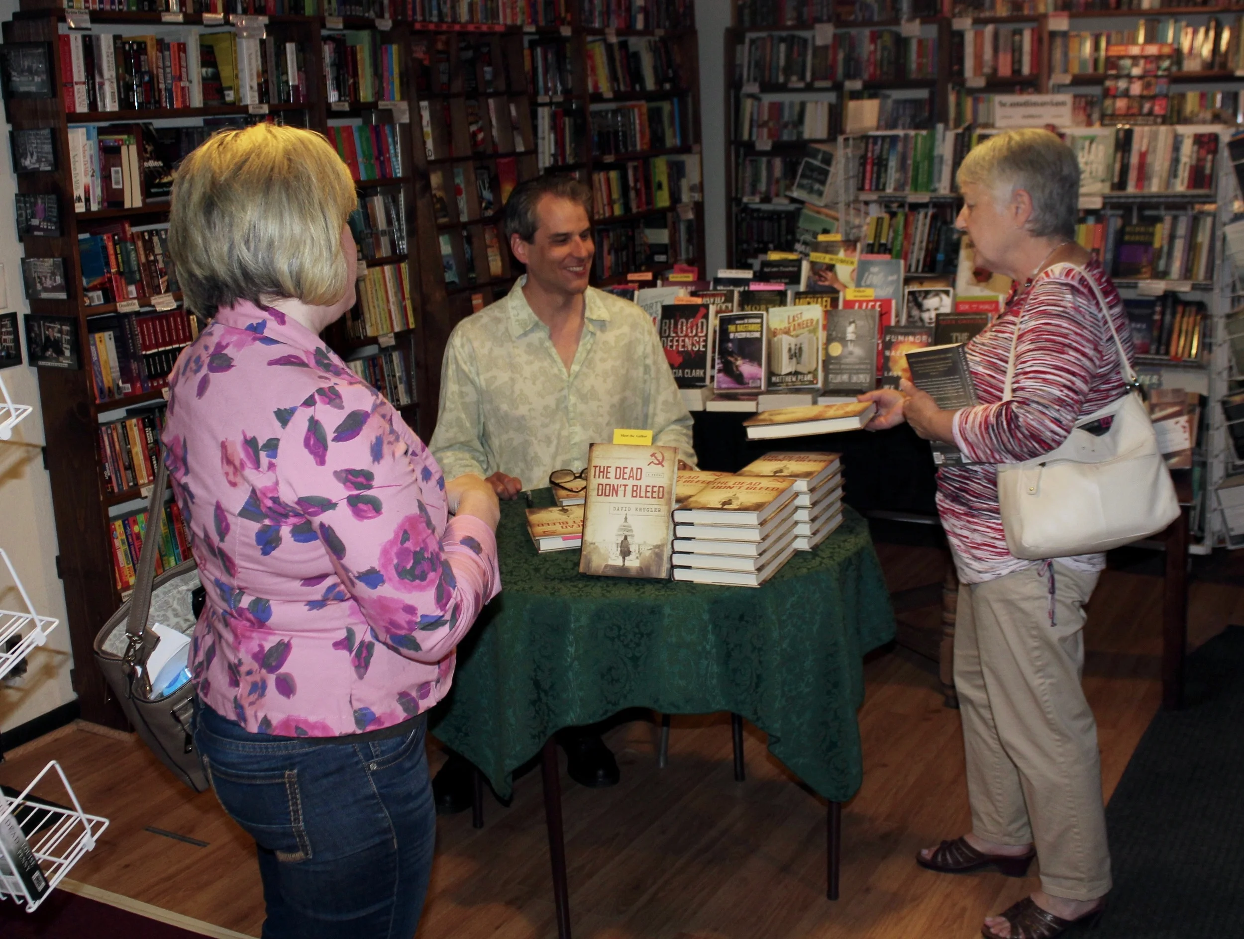 --June 22, 2017: Launch of the paperback edition of The Dead Don't Bleed at Mystery to Me, Madison, Wisc. Photo.